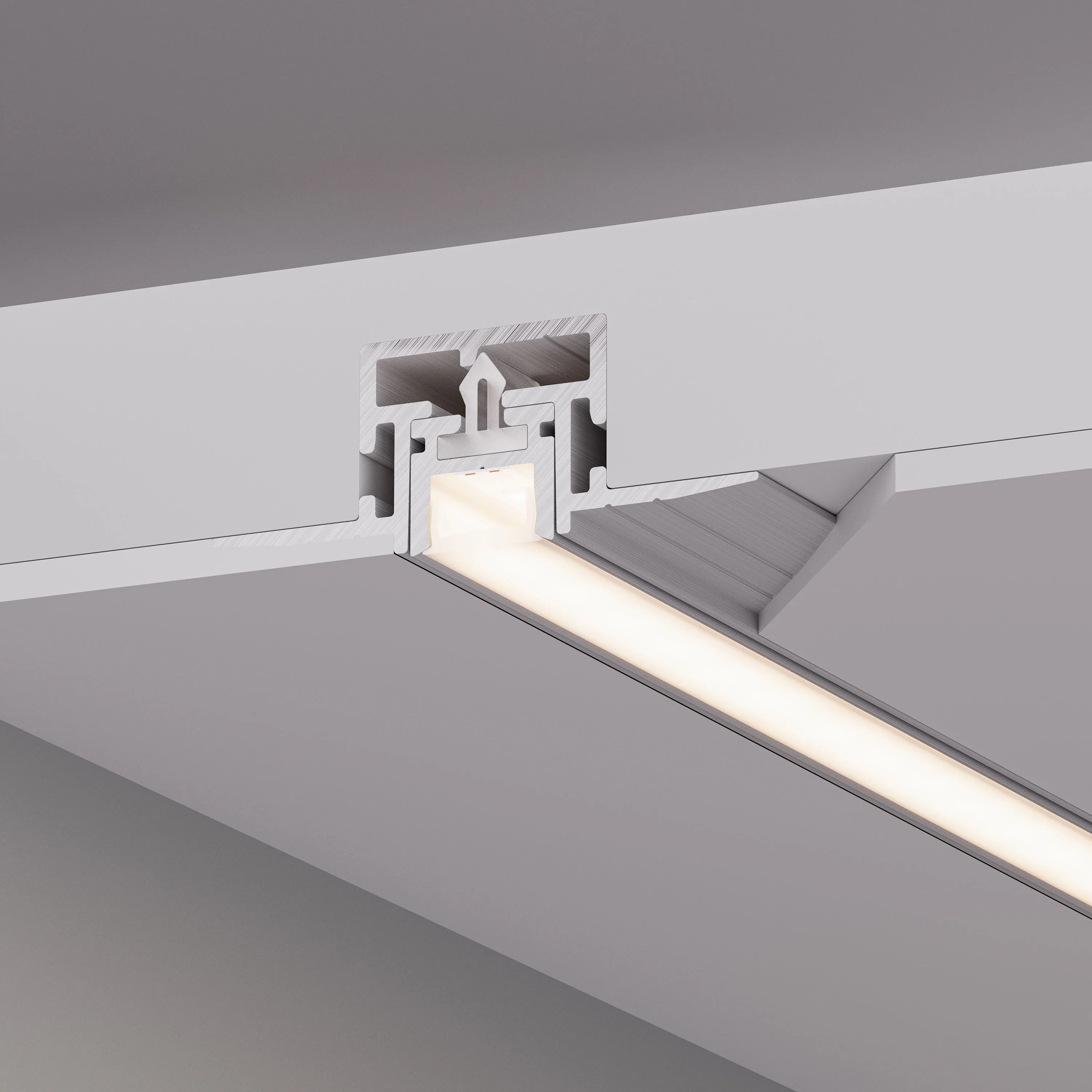 Алюминиевый профиль-держатель, встраиваемый в гипсокартон. Для профиля PIK-1010. Габаритные размеры (L×W×H): 2000x40x15 мм. Заглушки и другие аксессуары приобретаются отдельно. Цена за 1 метр.