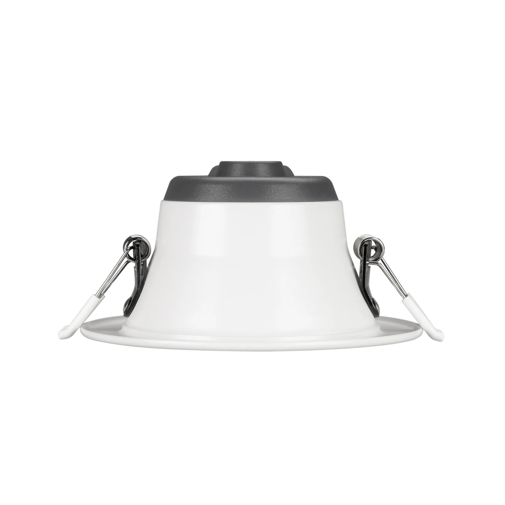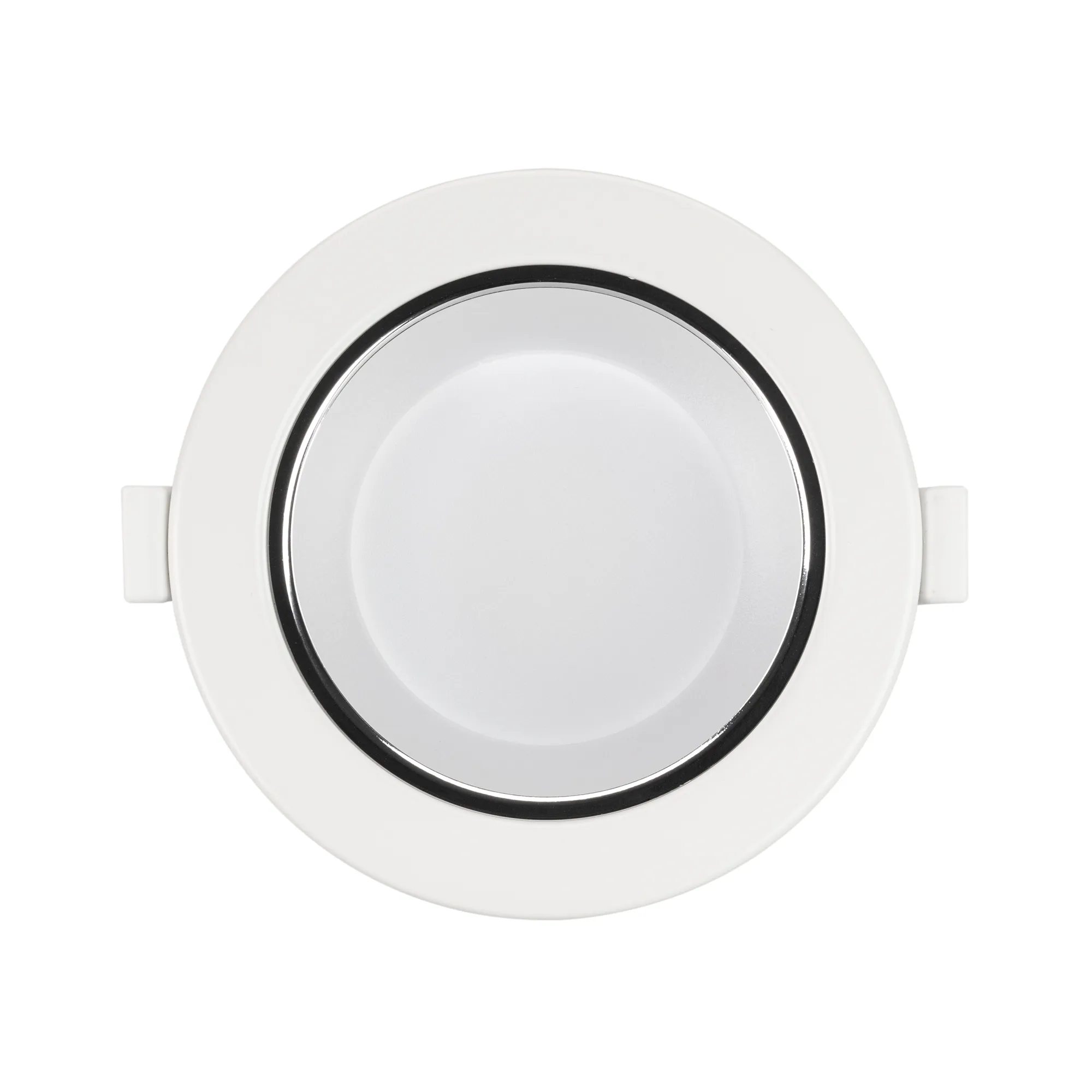 Светильник даунлайт с изменяемой цветовой температурой и переключателем на корпусе. Мощность 10 Вт, св. поток 880 лм, 88 лм/Вт, белый 6000К, или дневной 4000К, или теплый 3000К (выбор цвета свечения при установке, фиксированный), CRI>80, угол 80°, напряжение питания 230 В. Белый круглый корпус из алюминия, степень защиты IP20. Размер: диаметр 113 мм, высота 59 мм. Монтаж встраиваемый, установочное отверстие: диаметр 90-102 мм. Драйвер 18-35 В, 350 мА, пульсация <0,7%.