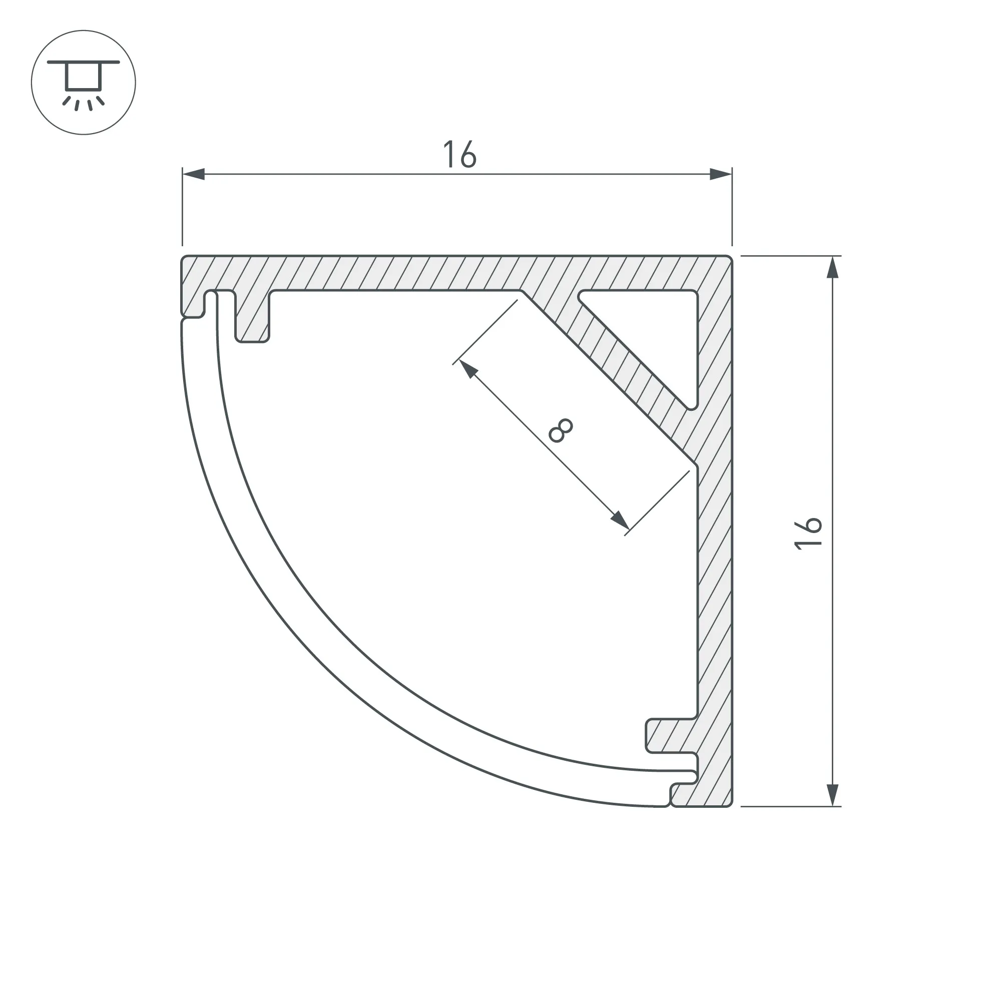 Алюминиевый угловой профиль для светодиодных лент и линеек. Цвет - черный RAL9005 (порошковая окраска). Габаритные размеры (L×W×H): 2000x16x16 мм. Ширина площадки для ленты 8 мм. Экраны, заглушки и другие аксессуары приобретаются отдельно. Цена за 1 метр.